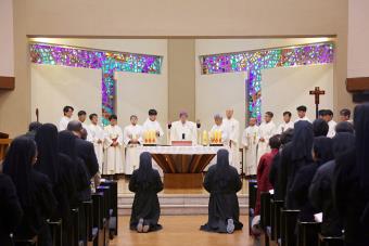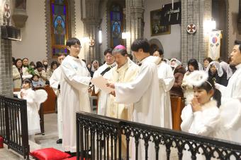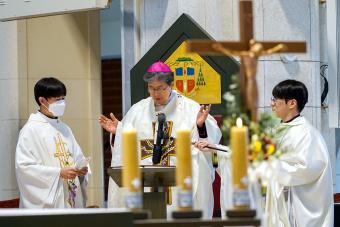 교구장 조환길(타대오) 대주교는 4월 20일(일) 오전 10시 30분 복현성당(주임 : 박수태 비오 신부)에서 주님 부활 대축일 미사 및 본당 설정 30주년 감사미사를 봉헌하고 90명의 신자에게 견진성사를 거행했다. 교구장 조환길(타대오) 대주교는 4월 20일(일) 오전 10시 30분 복현성당(주임 : 박수태 비오 신부)에서 주님 부활 대축일 미사 및 본당 설정 30주년 감사미사를 봉헌하고 90명의 신자에게 견진성사를 거행했다. |