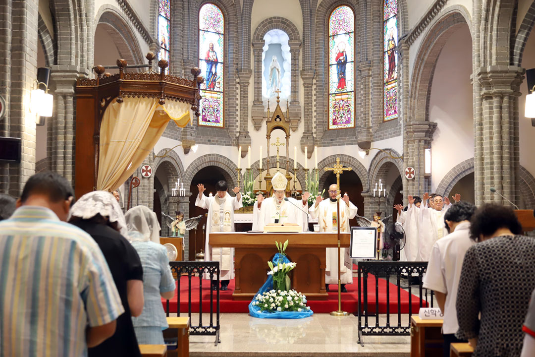 교구장 조환길(타대오) 대주교는 8월 15일(금) 오전 11시 주교좌 계산대성당(주임 : 백명흠 바오로 신부)에서 성모승천대축일 미사를 봉헌했다. 교구장 조환길(타대오) 대주교는 8월 15일(금) 오전 11시 주교좌 계산대성당(주임 : 백명흠 바오로 신부)에서 성모승천대축일 미사를 봉헌했다. |