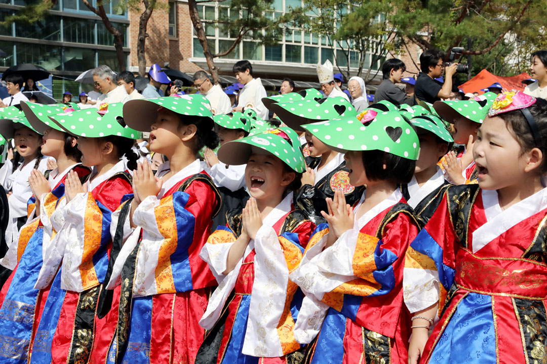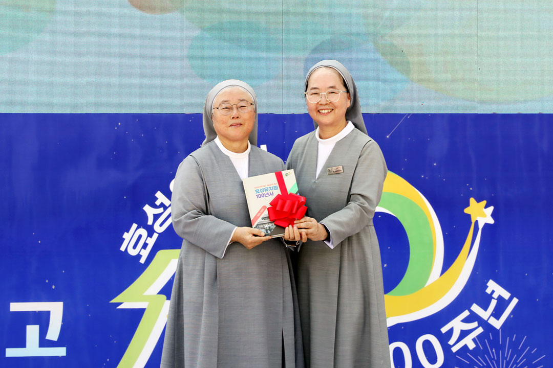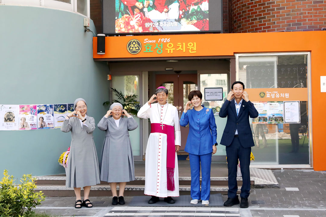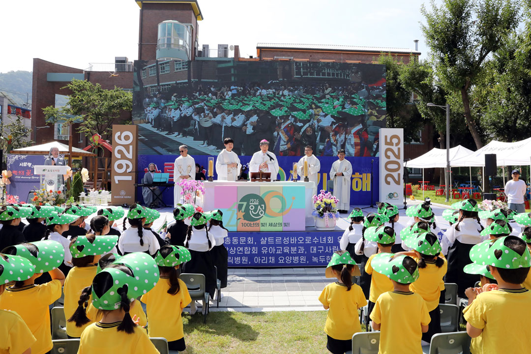 먼저 교구장 조환길(타대오) 대주교, 효성유치원 이사장 송경미(루시아, 샬트르 성 바오로 수녀회 대구관구) 수녀, 효성유치원 원장 홍명희(루갈다) 수녀, 강은희(글라라) 대구시교육감이 참석한 가운데 전광판 제막식을 하고, 조 대주교의 주례로 1부 감사미사가 봉헌됐다. 강론에서 조 대주교는 “100년의 역사를 살아오면서 일제강점기 때 폐원했다가 1년 만에 다시 개원하는 등 우여곡절도 많았다.”면서 “작은 일에도 정성과 사랑을 쏟았던 데레사 성녀 기념일인 오늘 100주년 감사미사를 봉헌하면서 사랑할 줄 아는 아이로 키우는 것이 가장 중요한 교육의 바탕이 되어야겠다.”고 했다. 1926년에 개원한 효성유치원이 ‘백 년의 꽃, 백 년의 빛’이라는 주제로 10월 1일(수) 오전 11시 효성유치원 야외 미리내 공원에서 지난 100년의 발자취를 돌아보고 미래 100년을 향한 비전을 공유하는 자리를 마련했다.