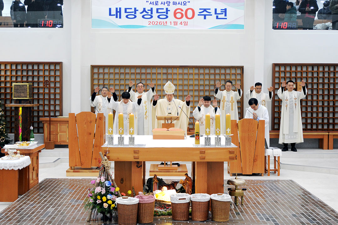 교구장 조환길(타대오) 대주교는 1월 4일(일) 오전 10시 30분 내당성당(주임 : 박병래 안토니오 신부)에서 본당 설정 60주년 감사미사를 봉헌했다.