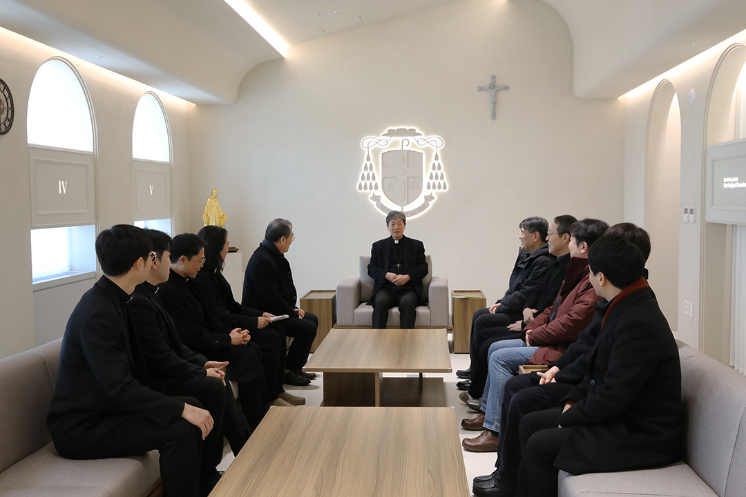 젊은이사목대리구 교구장 대리 장병배(베드로) 신부와 담당사제들은 1월 20일(화) 오전 10시 접견실에서 교구장 조환길(타대오) 대주교를 예방했다. 대구대교구는 ‘젊은이사목대리구’를 신설해 1월 6일 사제인사 공문을 통해 교구장 대리 장병배 신부와 8명의 사제를 임명했다. 앞으로 젊은이사목대리구는 재편된 교구 청년·청소년사목을 담당하게 된다. 젊은이사목대리구 교구장 대리 장병배(베드로) 신부와 담당사제들은 1월 20일(화) 오전 10시 접견실에서 교구장 조환길(타대오) 대주교를 예방했다. 대구대교구는 ‘젊은이사목대리구’를 신설해 1월 6일 사제인사 공문을 통해 교구장 대리 장병배 신부와 8명의 사제를 임명했다. 앞으로 젊은이사목대리구는 재편된 교구 청년·청소년사목을 담당하게 된다. |
