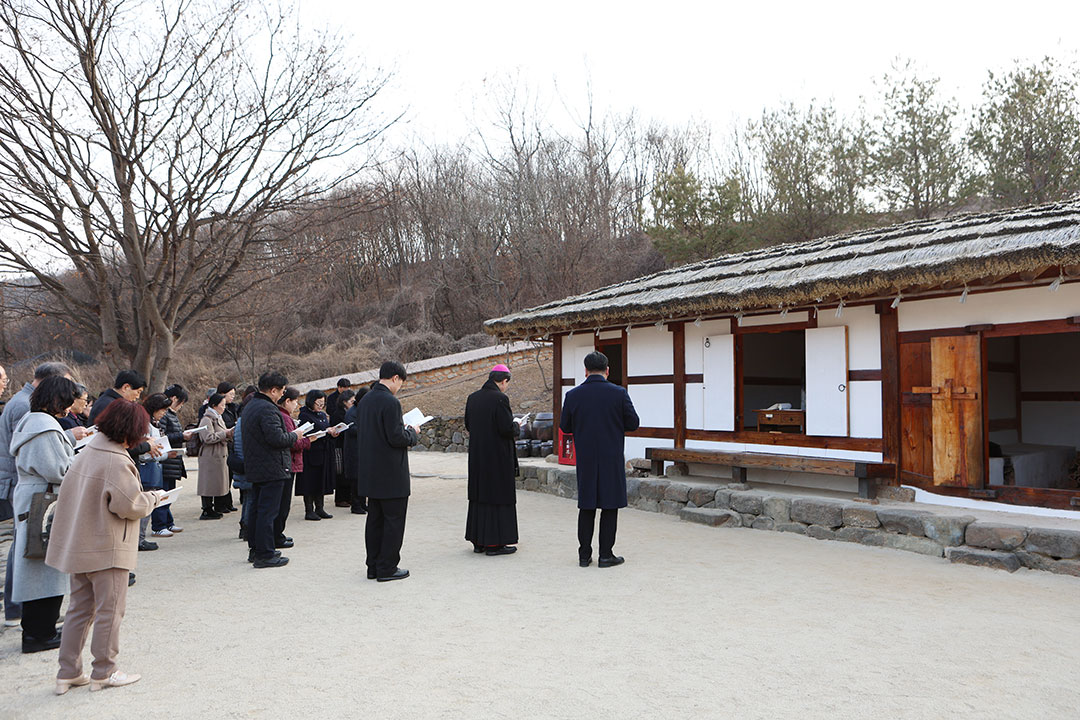 미사 후 조 대주교는 김진열 군위군수와 군 관계자들과 차담을 나누고, 생가 앞에서 미사 참례자들과 함께 연도를 바쳤다. |