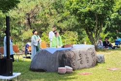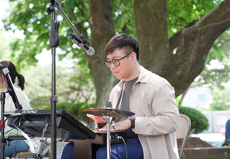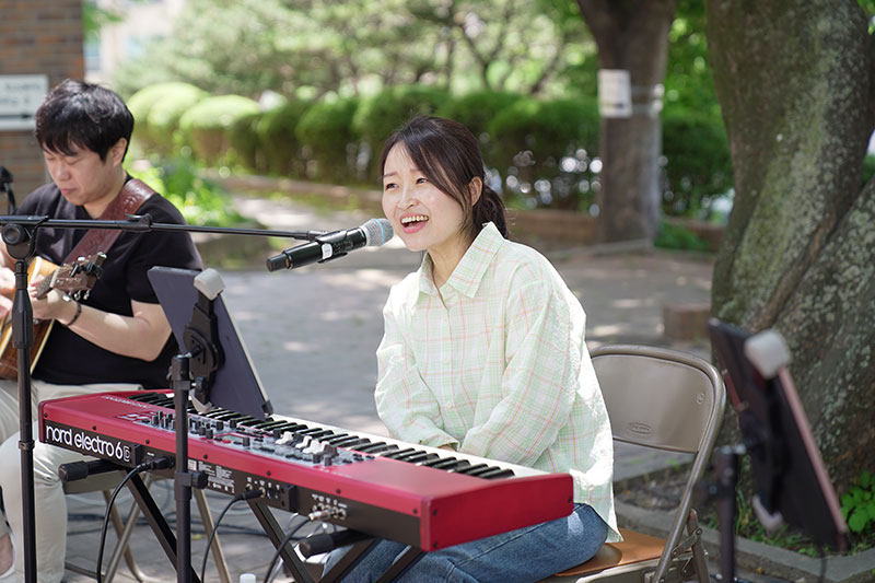 친교의 해를 맞이하여 찬양을 통해 하느님, 이웃, 피조물과 함께 친교와 소통을 나누기 위한 코이노니아 버스킹이 성모당 및 교구청을 방문하는 이들을 위해 열렸다. 5월 14일(화) 오전 11시 50분 교구청 내 꾸르실료교육관 앞에서 열린 버스킹은 '톡인어스(TALK IN US)'의 공연으로 진행되었다. |