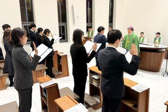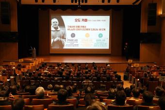 친교의 해를 맞이하여 찬양을 통해 하느님, 이웃, 피조물과 함께 친교와 소통을 나누기 위한 코이노니아 버스킹이 성모당 및 교구청을 방문하는 이들을 위해 열렸다. 5월 21일(화) 오전 11시 50분 교구청 내 꾸르실료교육관 앞에서 열린 버스킹은 '가브리엘 밴드'의 공연으로 진행되었다. |