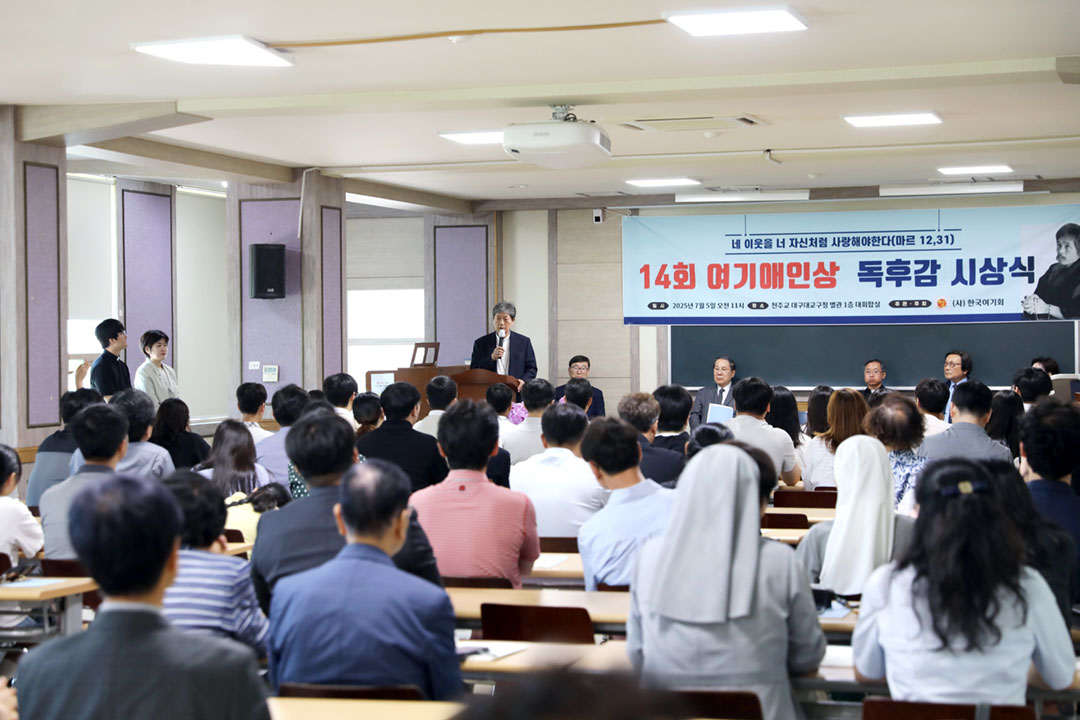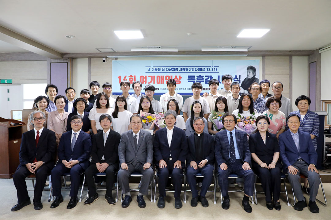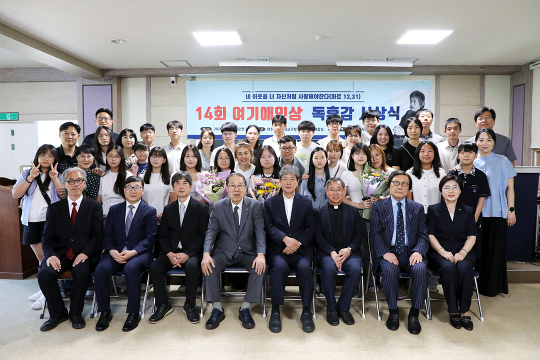(사)한국여기회(총재 : 조환길 타대오 대주교, 이사장 : 박영일 바오로 신부, 회장 : 권오광 다미아노)에서 주최하는 제14회 ‘여기애인상’ 독후감 시상식이 7월 5일(토) 오전 11시 교구청 별관 대회합실에서 있었다. 2010년 당시 한국여기회 총재 고(故) 이문희(바울로) 대주교에 의해 제정된 이 행사는 나가이 다카시 박사가 주장한 ‘여기애인’(如己愛人, 남을 내 몸처럼 사랑하라) 정신을 청소년들에게 널리 알리기 위해 해마다 중·고교생을 대상으로 독후감을 공모하고 있다. 나가이 다카시(바오로, 1908-1951) 박사는 1945년 8월 일본 나가사키에 떨어진 원자폭탄으로 아내를 잃고 부상을 당했지만 피폭자들을 보살피며 원폭의 폐해를 연구한 인물이다. 그는 피폭 현장을 기록하며 「나가사키의 종」, 「묵주알」, 「영원한 것을」 등을 집필해 전쟁의 비참함을 세상에 알렸다.