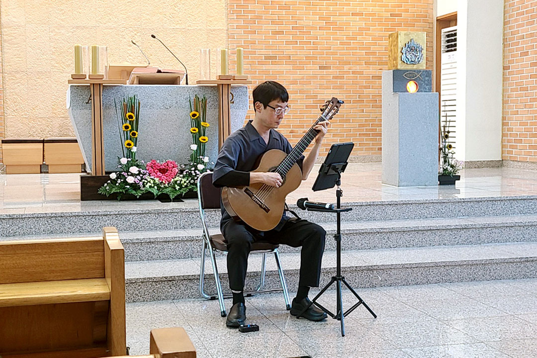 정평성당(주임 : 한인갑 베네딕토 신부) 여름 작은 음악회가 7월 6일(일) 오전 11시 50분부터 본당 성전에서 열렸다. 이날 음악회는 한인갑 주임신부의 영명축일을 맞아 클래식 기타리스트 염해석을 초대해 진행했다. 정평성당(주임 : 한인갑 베네딕토 신부) 여름 작은 음악회가 7월 6일(일) 오전 11시 50분부터 본당 성전에서 열렸다. 이날 음악회는 한인갑 주임신부의 영명축일을 맞아 클래식 기타리스트 염해석을 초대해 진행했다. |