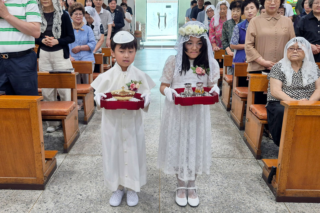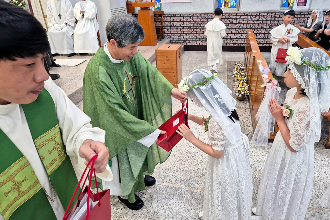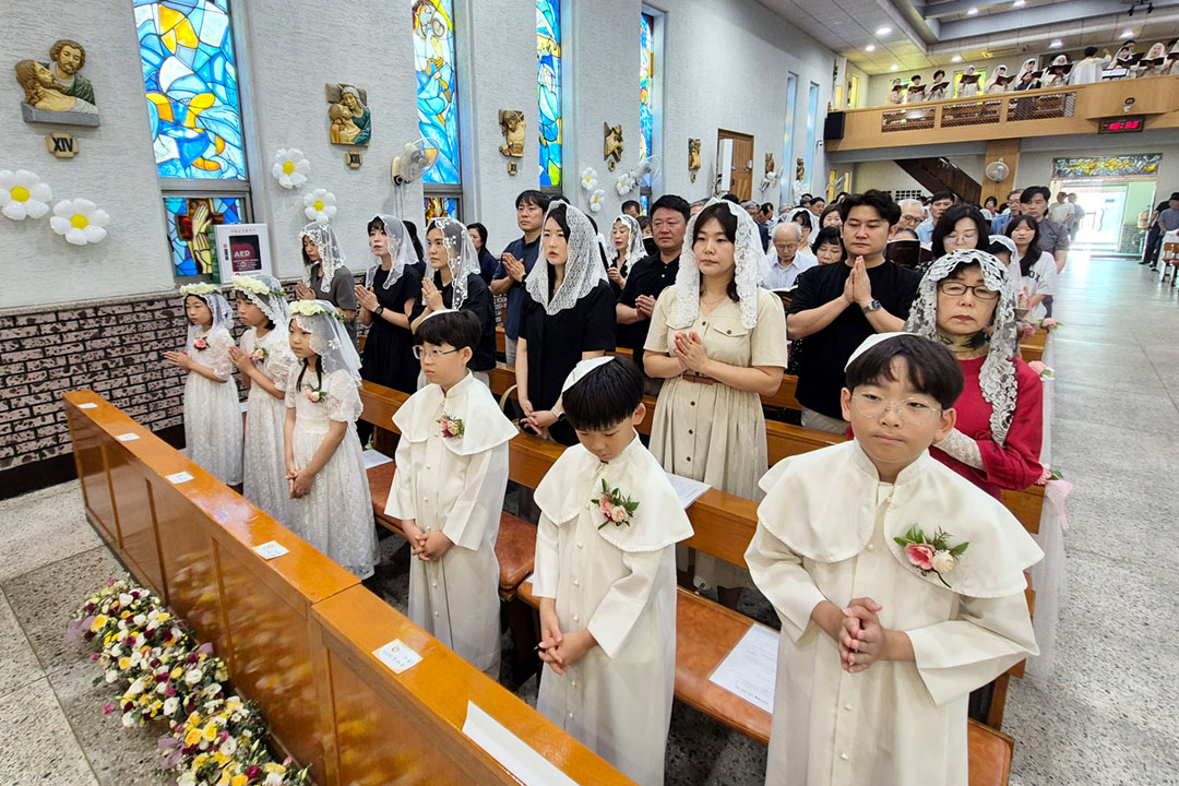 월배성당(주임 : 김해원 가브리엘 신부) 주일학교 학생 12명의 첫영성체가 8월 24일(일) 오전 10시 30분 교중미사 중에 거행됐다. 월배성당(주임 : 김해원 가브리엘 신부) 주일학교 학생 12명의 첫영성체가 8월 24일(일) 오전 10시 30분 교중미사 중에 거행됐다. |