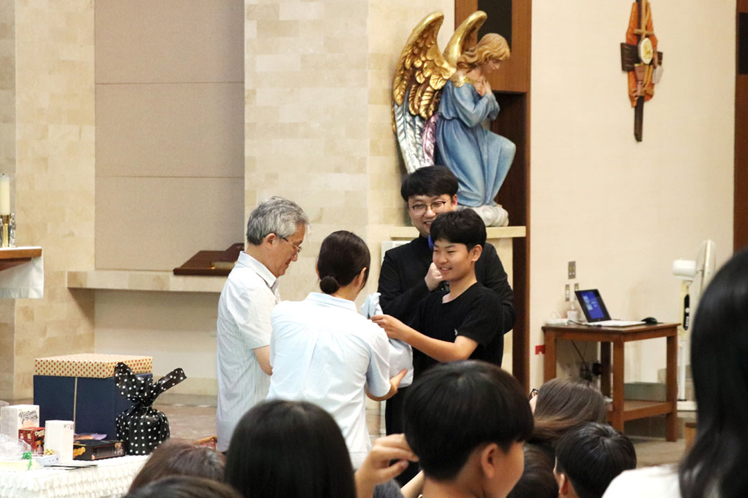 이날 지역 내 7개 본당(대해, 문덕, 이동, 오천, 연일, 지곡, 효자)의 학생 및 교리교사, 학부모 430여 명이 미사에 참례했고, 미사 후에는 행운권 추첨 및 상품 증정, 간식을 먹으며 친교의 시간을 가졌다. |