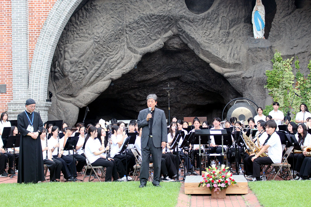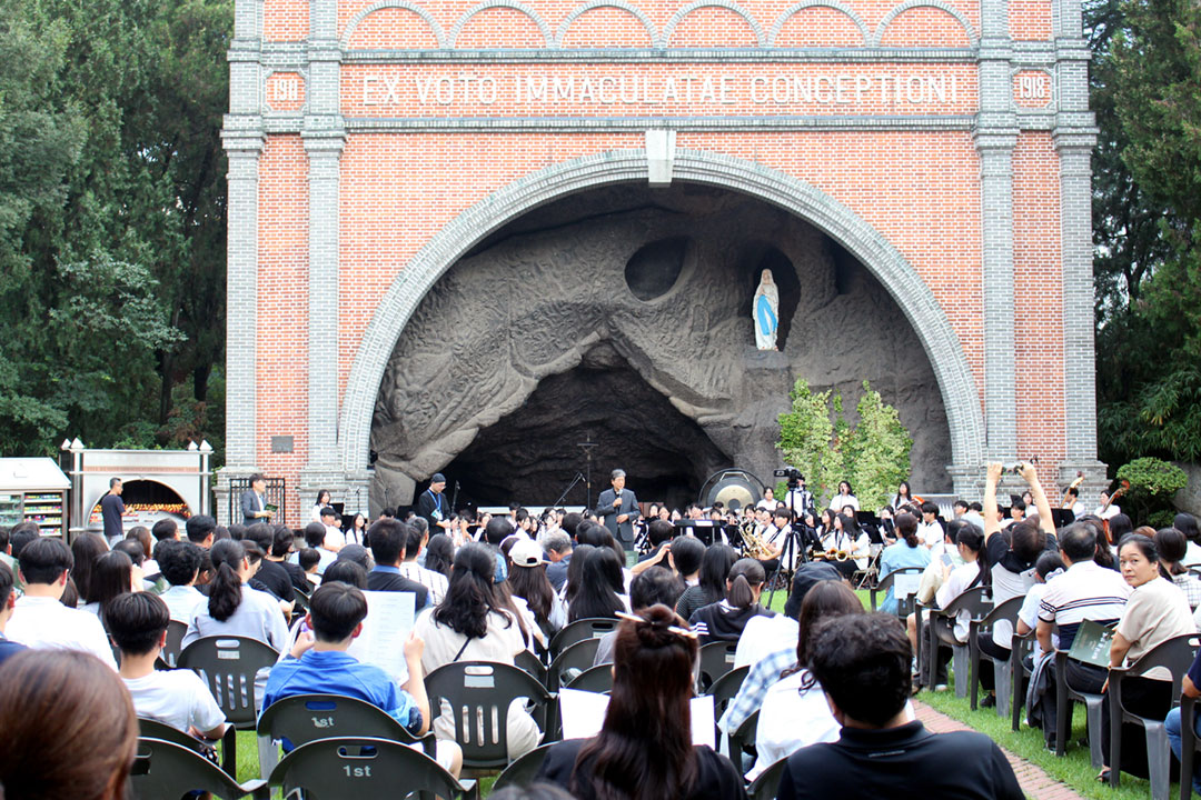 대건중학교(교장 : 신호정 리카르도) 수페르나 윈드 오케스트라 제8회 정기연주회가 9월 13일(토) 오후 5시 성모당에서 열려 교구장 조환길(타대오) 대주교가 참석했다. 올해 개교 79주년을 맞은 대건중학교는 오랜 시간 동안 학교를 위해 헌신하고 기도해 준 모든 은인들과 교회 공동체에 감사를 전하고자 이번 정기연주회를 준비했다. 신호정 교장은 “주보 성인인 성 김대건 안드레아 축일을 맞이하여, 신앙의 뿌리를 되새기고 학교 공동체를 따뜻하게 감싸주신 성모님의 사랑을 음악으로 표현하고자 한다”고 전했다.