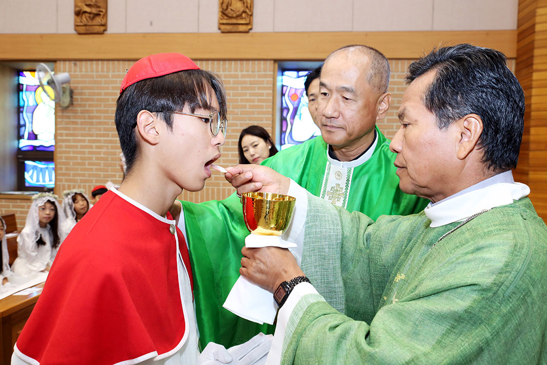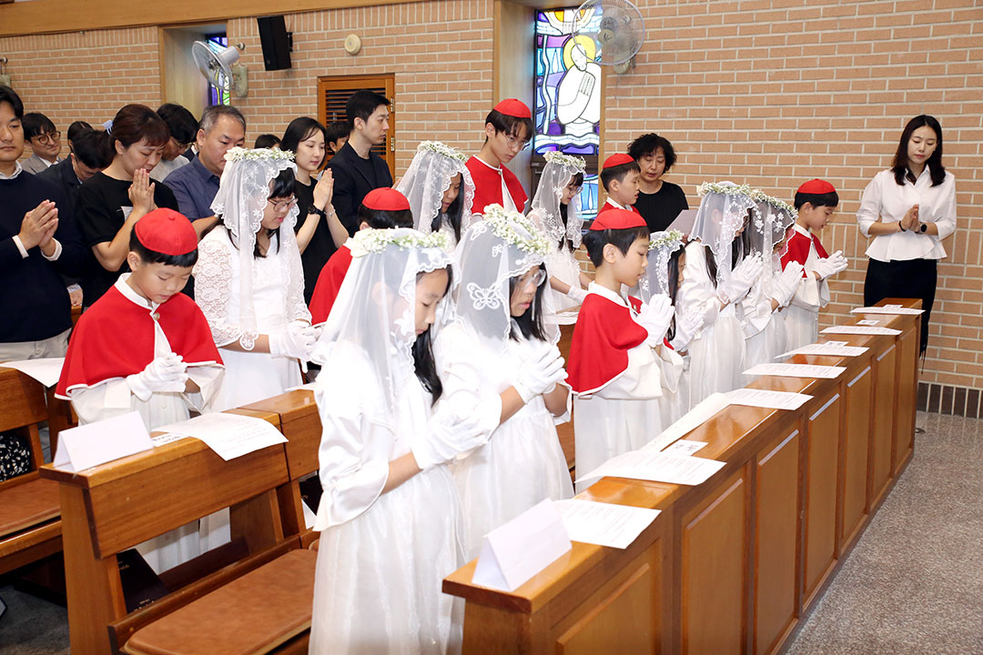 성 정하상 바울로 성당(주임 : 박상용 요한 신부)은 10월 19일(일) 오전 10시 30분 교중미사 때 박태헌(다윗) 외 13명의 주일학교 어린이 첫영성체 예식을 거행했다.