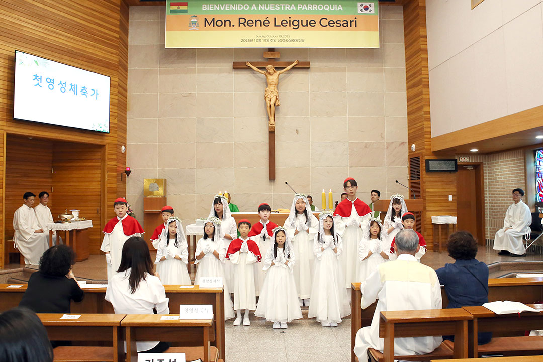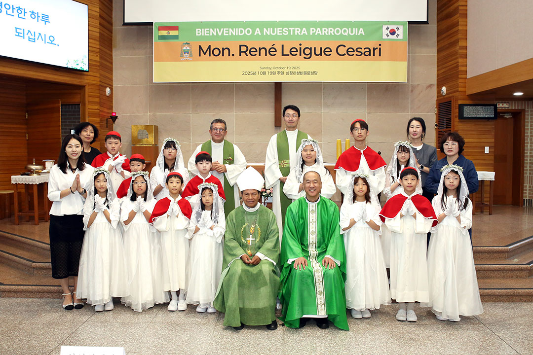 이날 미사에는 대구대교구를 방문 중인 볼리비아 산타크루즈대교구장 레네 리그 세사리(René Leigue Cesari) 대주교가 본당을 방문하여 인사말을 하며 첫영성체를 한 어린이들에게 부모님과 같이 한 약속을 꼭 지키라는 당부를 했다. 또한 볼리비아 선교사로 사목했던 박상용(요한) 주임신부에게 특별히 감사를 전했다. 성 정하상 바울로 성당(주임 : 박상용 요한 신부)은 10월 19일(일) 오전 10시 30분 교중미사 때 박태헌(다윗) 외 13명의 주일학교 어린이 첫영성체 예식을 거행했다.