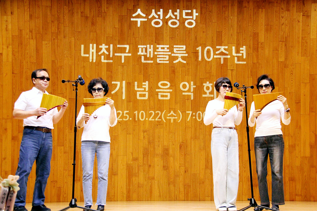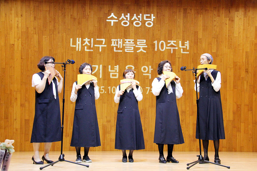 2015년 3월에 시작하여, 올해로 창립 10주년을 맞이한 수성성당 ‘내친구 팬플룻’은 대구·경북 지역의 가실성당, 성모솔숲마을, 왜관 신나무골 성지, 한티, 포항 청하공소, 새방골 성당 등에서 미사 중 팬플룻 연주를 이어왔다. 수성성당(주임 : 이상택 리노 신부) 내친구 팬플룻 10주년 기념음악회가 10월 22일(수) 오후 7시 한영아트센터에서 열렸다.