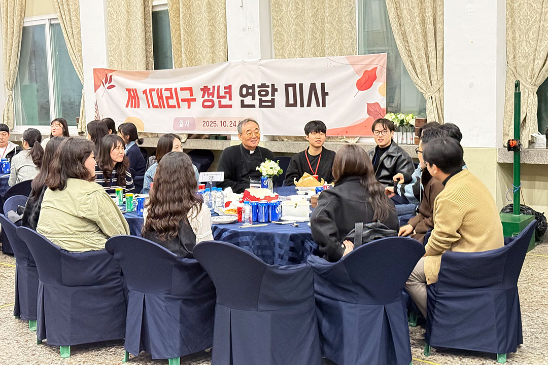 이날 1대리구 내 14개 본당에서 110여 명이 참석한 가운데 미사를 봉헌하고 강당으로 자리를 옮겨 2부 행사가 진행됐다. 먼저 장 주교가 청년들이 미리 제출한 질문에 대해 답변하고, 장 주교와 1대리구 교구장 대리 장병배(베드로) 신부가 8개의 조로 나눠 앉은 청년들을 방문해 그들 각자가 준비한 성경구절을 중심으로 자유롭게 대화했다. 1대리구 청년 연합 미사가 10월 24일(금) 오후 7시 30분 주교좌계산대성당에서 교구 총대리 장신호(요한보스코) 주교의 주례로 거행됐다.