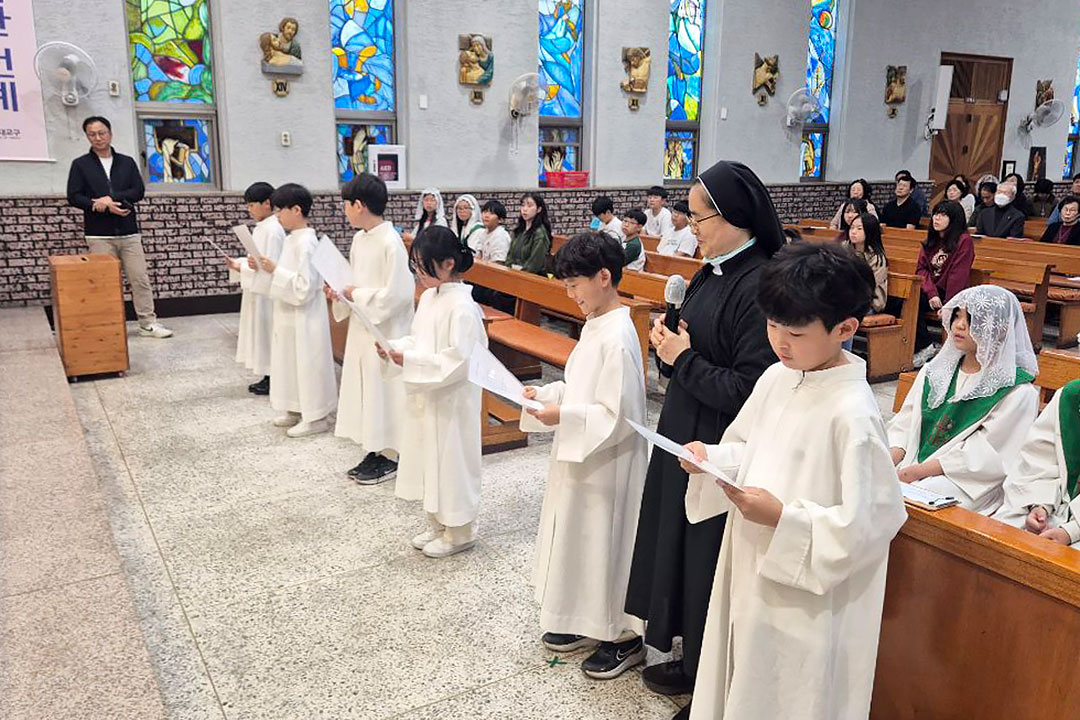월배성당(주임 : 김해원 가브리엘 신부)에서는 10월 25일(토) 오후 4시 어린이 미사 중 6명의 어린이 복사단 입단식이 거행됐다. 월배성당(주임 : 김해원 가브리엘 신부)에서는 10월 25일(토) 오후 4시 어린이 미사 중 6명의 어린이 복사단 입단식이 거행됐다. |