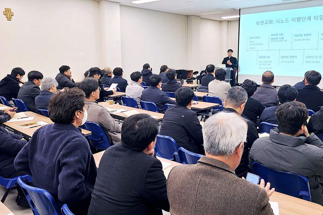 2004~2010년 서품자 중 총 65명의 사제가 참석한 이날 교육은 보편교회 시노드 이행단계에 발맞추어 교구 내 시노달리타스를 구체적으로 실현하기 위한 과정의 일환으로 사목연구소 “오늘”에서 준비한 교육 내용으로 진행됐다. 2026년 교구 사제연수 중에 있을 「성령 안에서 대화」를 위한 촉진자와 서기 교육이 1월 6일(화) 오후 1시 30분 주교좌 범어대성당 지하 1층 마리아홀에서 있었다.