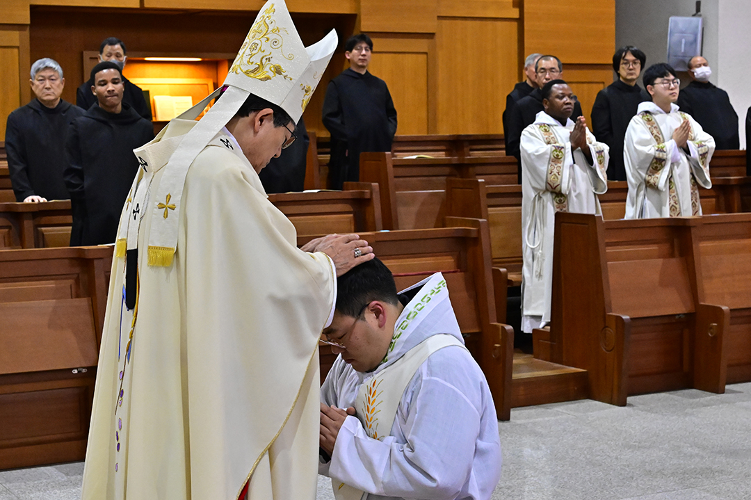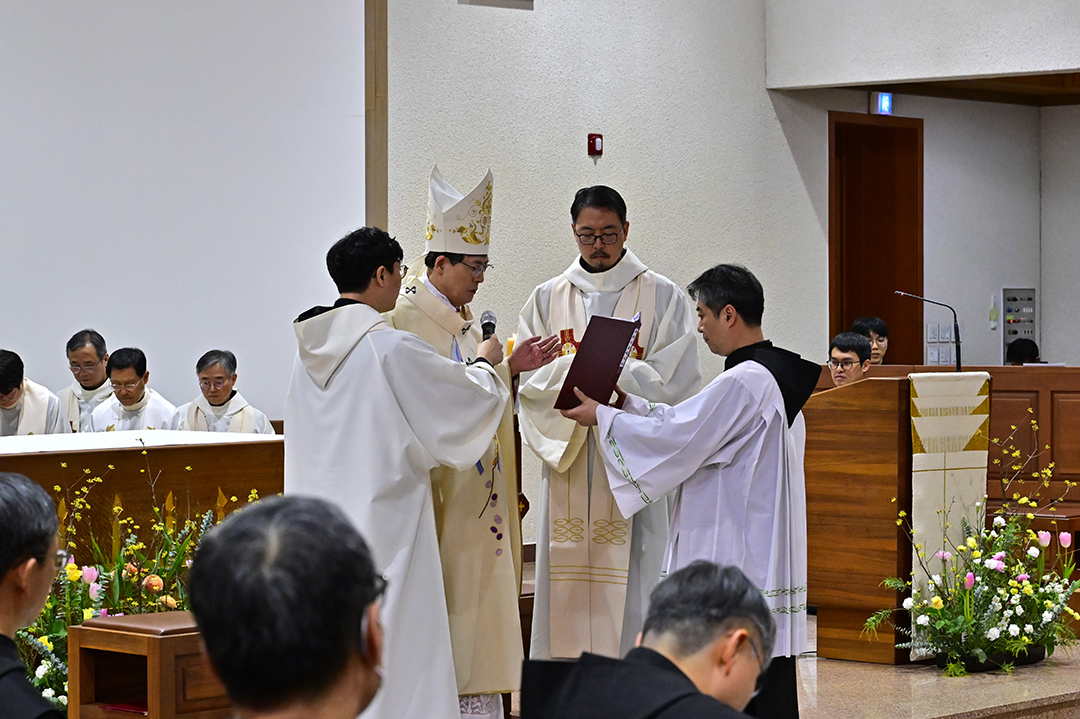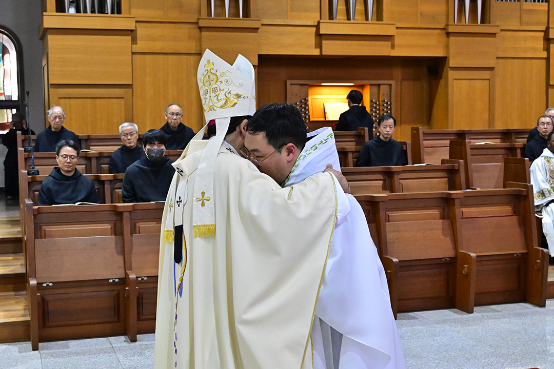 성 베네딕도회 사제·부제 서품식이 1월 16일(금) 오후 2시 성 베네딕도회 왜관수도원 성전에서 교구장 조환길(타대오) 대주교의 주례로 거행됐다. 이날 송영빈(크리스토퍼) 수사가 사제로, 김민우(볼프강) 수사와 서은우(보나벤투라) 수사가 부제로 서품받았다. 성 베네딕도회 사제·부제 서품식이 1월 16일(금) 오후 2시 성 베네딕도회 왜관수도원 성전에서 교구장 조환길(타대오) 대주교의 주례로 거행됐다. 이날 송영빈(크리스토퍼) 수사가 사제로, 김민우(볼프강) 수사와 서은우(보나벤투라) 수사가 부제로 서품받았다. |