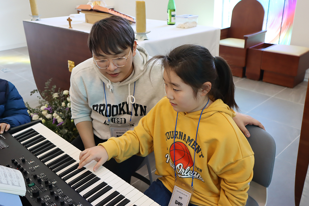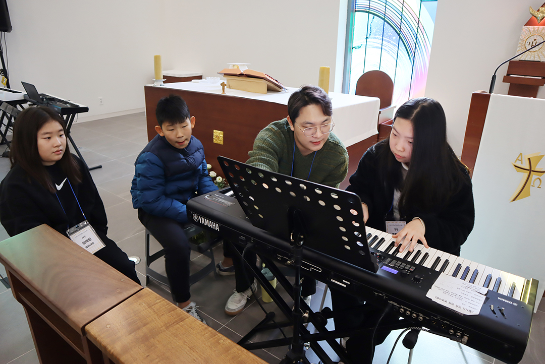 전례음악 봉사자 캠프가 1월 17일(토)부터 18일(일)까지 대구가톨릭청소년회 무학연수원에서 있었다. 교구 생활성가협의회(회장 : 이상범 요셉)에서 진행한 이번 캠프는 8개 본당에서 51명의 주일학교 학생(초5~고2)이 참가해 파트별로 레슨을 받고, 황영삼(마태오, 대구가톨릭대학교 교수) 신부의 특강도 들었다.