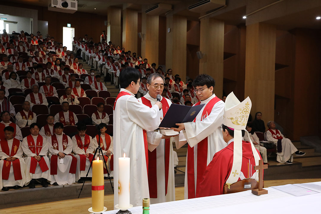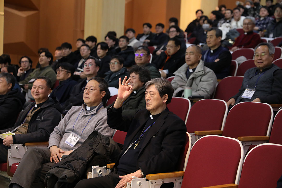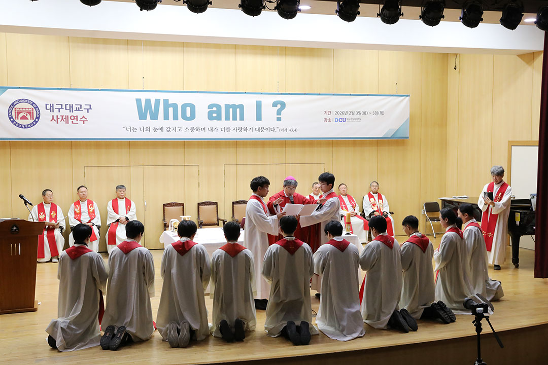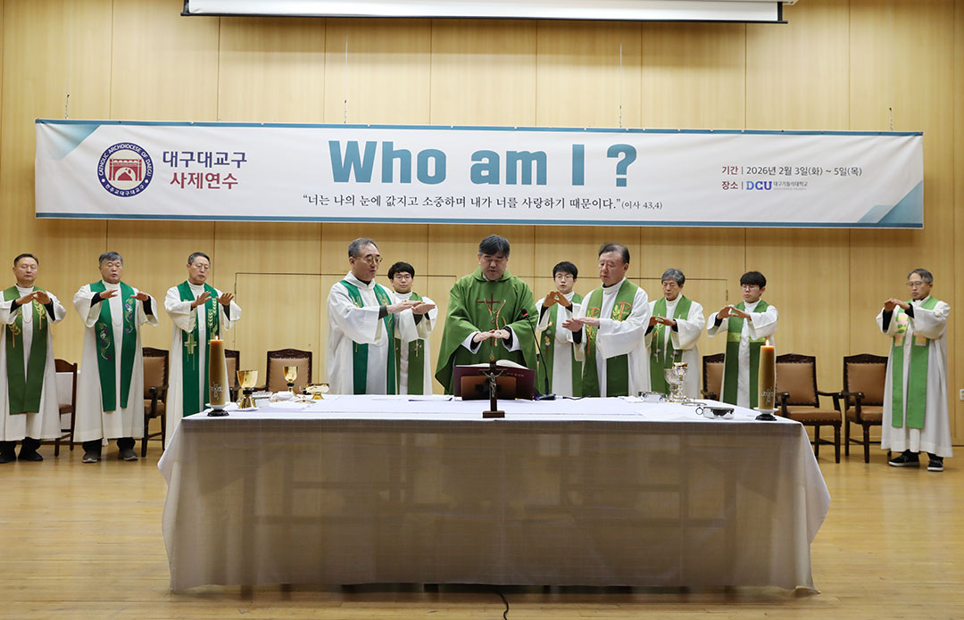 2026년 사제연수가 2월 3일(화)부터 5일(목)까지 대구가톨릭대학교 효성캠퍼스에서 열렸다. 이번 연수에는 330여 명의 교구 사제들이 참석했다. 연수는 “Who am I? - 너는 나의 눈에 값지고 소중하며 내가 너를 사랑하기 때문이다(이사 43,4)”를 주제로, 한국로고테라피연구소 김미라(아녜스) 소장의 강의를 통해 자신의 참 자아를 발견하는 자리로 마련됐다. 또한 교구 10년 장기 사목 계획의 네 번째 단계인 ‘이웃 사랑’을 주제로 「성령 안에서 대화」가 진행돼 참석 사제들은 서로의 경험과 사목적 통찰을 나눴다. 이와 함께 젊은이 사목 대리구의 비전 발표와 2027 세계청년대회(World Youth Day) 소개도 이어졌다. 교구장 조환길(타대오) 대주교는 “이번 연수는 사목의 정체성을 넘어 사제 개인의 행복을 위해서도 매우 중요한 만큼 교회를 위해서도, 또 자신을 위해서도 유익하게 보내길 바란다.”면서 “2박 3일 동안 우리 앞에 놓인 여러 현안들을 다시 한 번 성찰하며, 각자 더욱 행복한 사제가 되기 위한 알찬 시간이 되면 좋겠다.”고 덧붙였다. 한편, 연수 마지막 날 봉헌된 파견 미사 중에는 젊은이 사목 대리구 파견 선포식과 함께 젊은이사목대리구 및 WYD 교구 조직위원회 담당 사제 11명에 대한 파견식이 거행됐다. 2026년 사제연수가 2월 3일(화)부터 5일(목)까지 대구가톨릭대학교 효성캠퍼스에서 열렸다. 이번 연수에는 330여 명의 교구 사제들이 참석했다. 연수는 “Who am I? - 너는 나의 눈에 값지고 소중하며 내가 너를 사랑하기 때문이다(이사 43,4)”를 주제로, 한국로고테라피연구소 김미라(아녜스) 소장의 강의를 통해 자신의 참 자아를 발견하는 자리로 마련됐다. 또한 교구 10년 장기 사목 계획의 네 번째 단계인 ‘이웃 사랑’을 주제로 「성령 안에서 대화」가 진행돼 참석 사제들은 서로의 경험과 사목적 통찰을 나눴다. 이와 함께 젊은이 사목 대리구의 비전 발표와 2027 세계청년대회(World Youth Day) 소개도 이어졌다. 교구장 조환길(타대오) 대주교는 “이번 연수는 사목의 정체성을 넘어 사제 개인의 행복을 위해서도 매우 중요한 만큼 교회를 위해서도, 또 자신을 위해서도 유익하게 보내길 바란다.”면서 “2박 3일 동안 우리 앞에 놓인 여러 현안들을 다시 한 번 성찰하며, 각자 더욱 행복한 사제가 되기 위한 알찬 시간이 되면 좋겠다.”고 덧붙였다. 한편, 연수 마지막 날 봉헌된 파견 미사 중에는 젊은이 사목 대리구 파견 선포식과 함께 젊은이사목대리구 및 WYD 교구 조직위원회 담당 사제 11명에 대한 파견식이 거행됐다. |