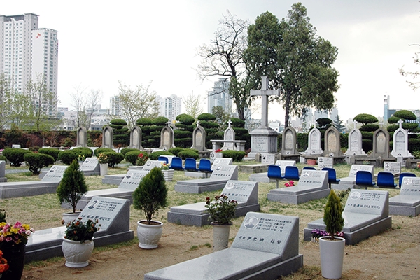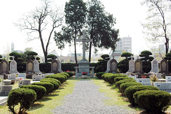 묘지를 들어서면 큰 화강암 십자가가 보이는데, 그 아래에는 ‘그때 하늘에서 사람의 아들의 표징이 나타날 것이다’(마태 24,30)라고 적혀있다. 이는 공심판 때 그리스도가 구름을 타고 재림하면, 악인은 불에 던져지고, 의인은 하느님 나라로 불려가 태양처럼 빛나게 됨을 상기시켜 준다.
